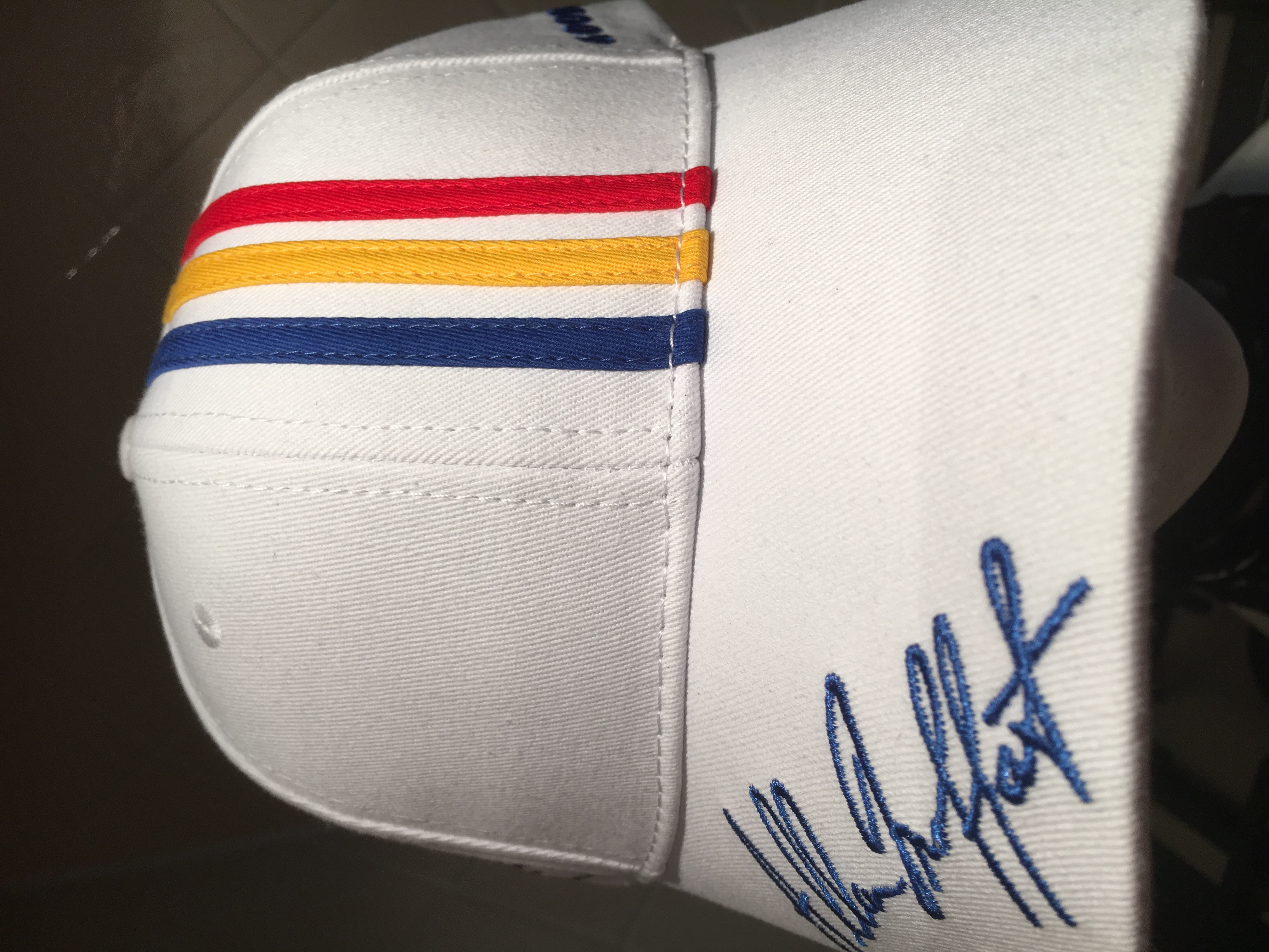 This retro designed 3 colour stripe hat is also loved by the man himself as you can see Allan wearing one of his nearly designed hats.